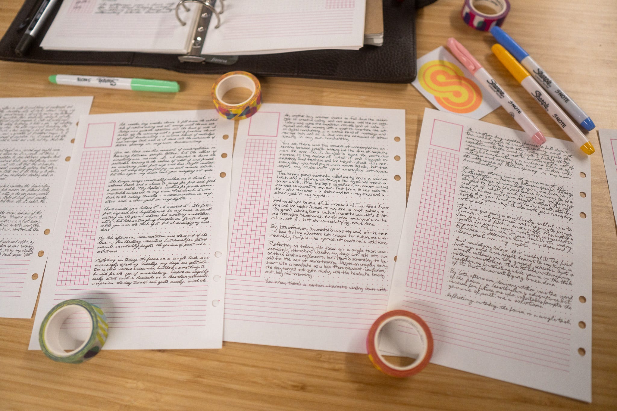 In an attempt to understand my interactions with code, AI, the drawing machines and documentation I've started a year of Arts-Based Research, focusing on synthesised handwriting, AI assisted journaling and the processes involved in running an art-studio. The primary outputs will be documentation of this research, which may also produce drawing machine, print and sometimes screen based artwork as secondary outputs.