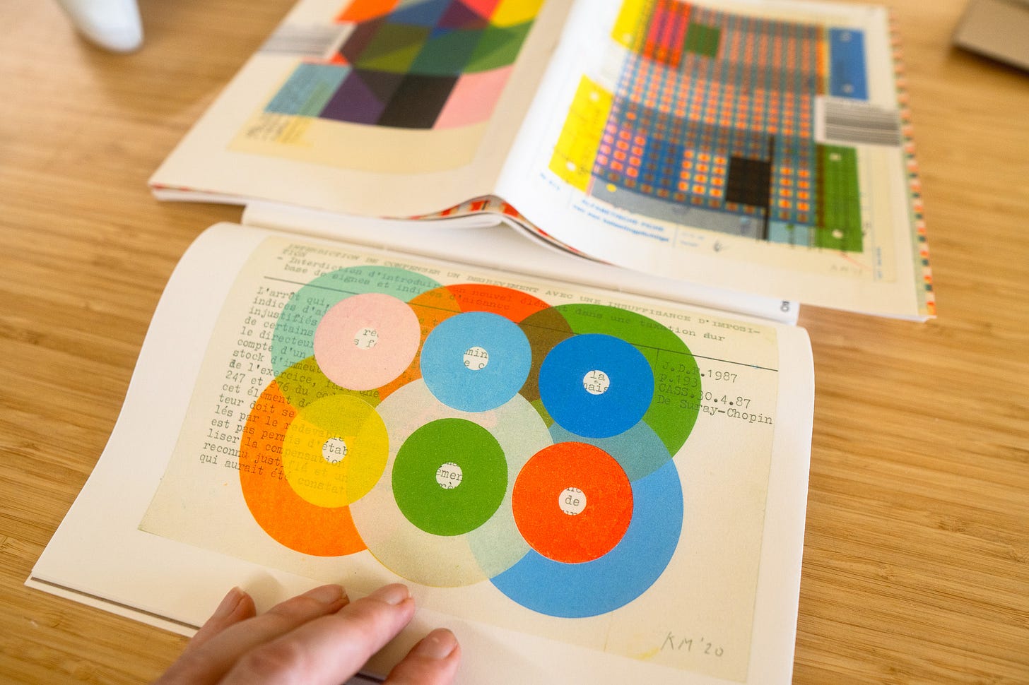 Sometimes theyāll be made of prints, sometimes pen plots, or rubber stamps and maybe even cut up riso prints.