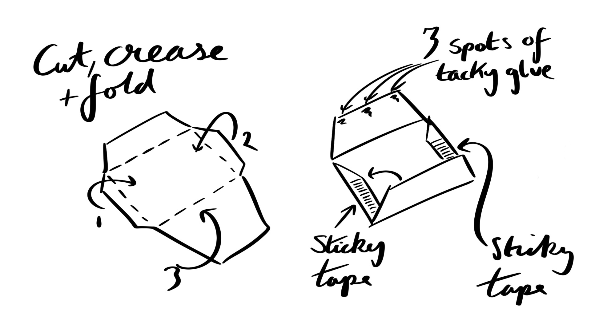Somewhere on the internet I read about how to make good tacky semi-sticky glue for folding the flap down so it stays shut but people can still easily open it. But it seemed like a lot of hard work, so I just use three dabs of stick glue instead.