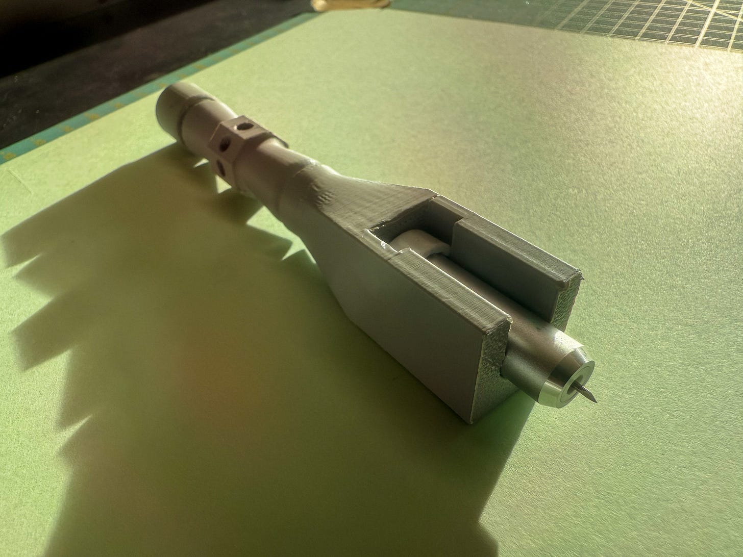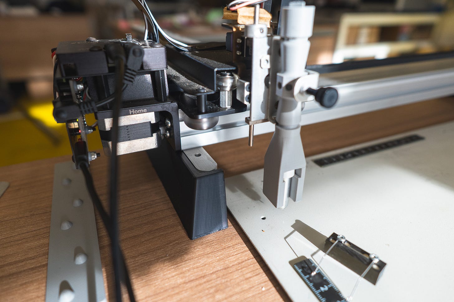 Surprisingly that worked on the ArtFrame (see later, kinda), but I also wanted to see if I could get a normal AxiDraw/NextDraw to hold the holder. That in turn had me making some “stilts” for the plotter, ‘cause the whole thing needed to be lifted up exactly 37mm…
