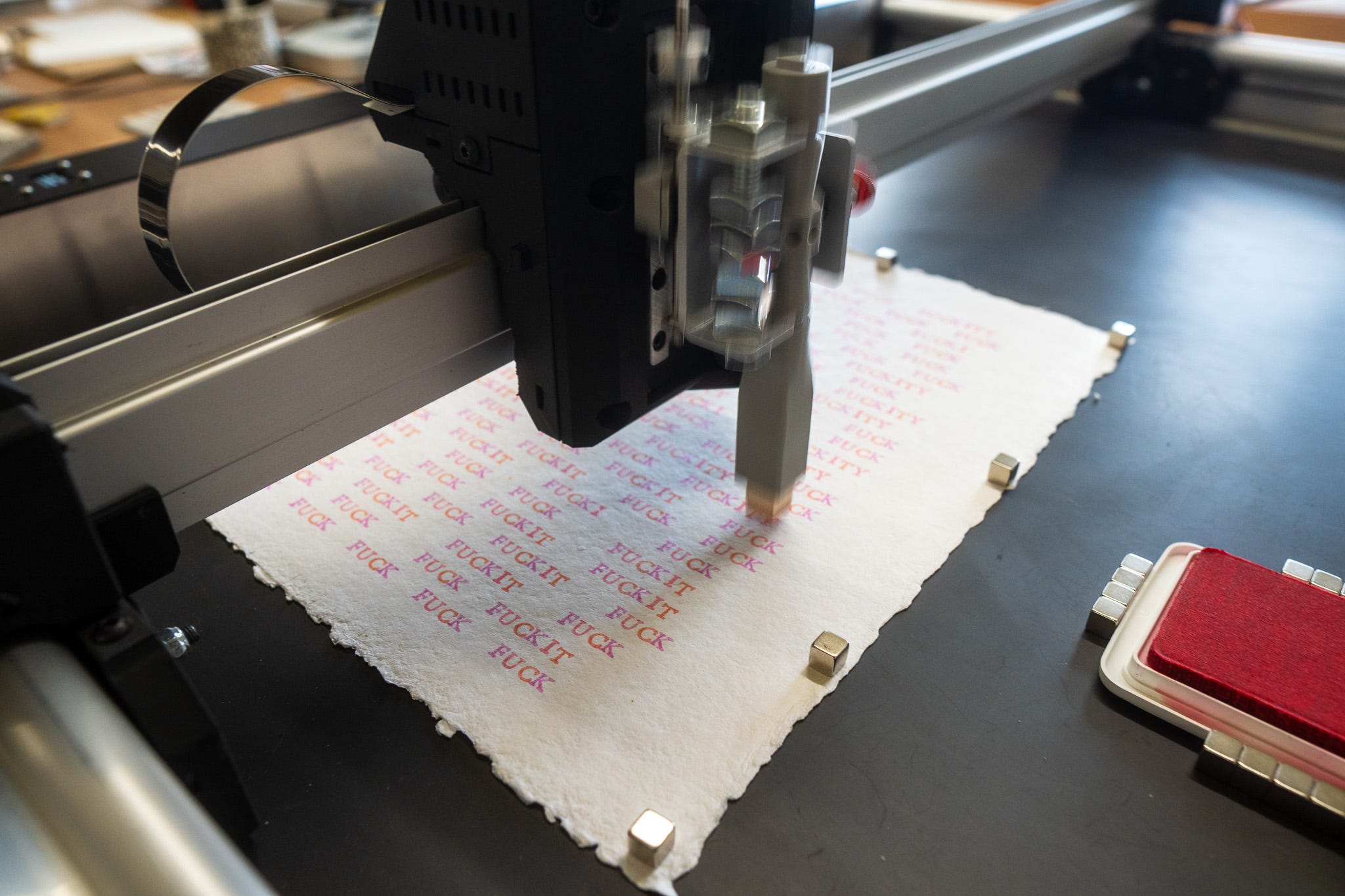 However, Iāve been getting the ArtFrame to use rubber stamps & ācause it uses GCODE, you can use that GCODE to SLAM whatever itās holding down as fast at possible.