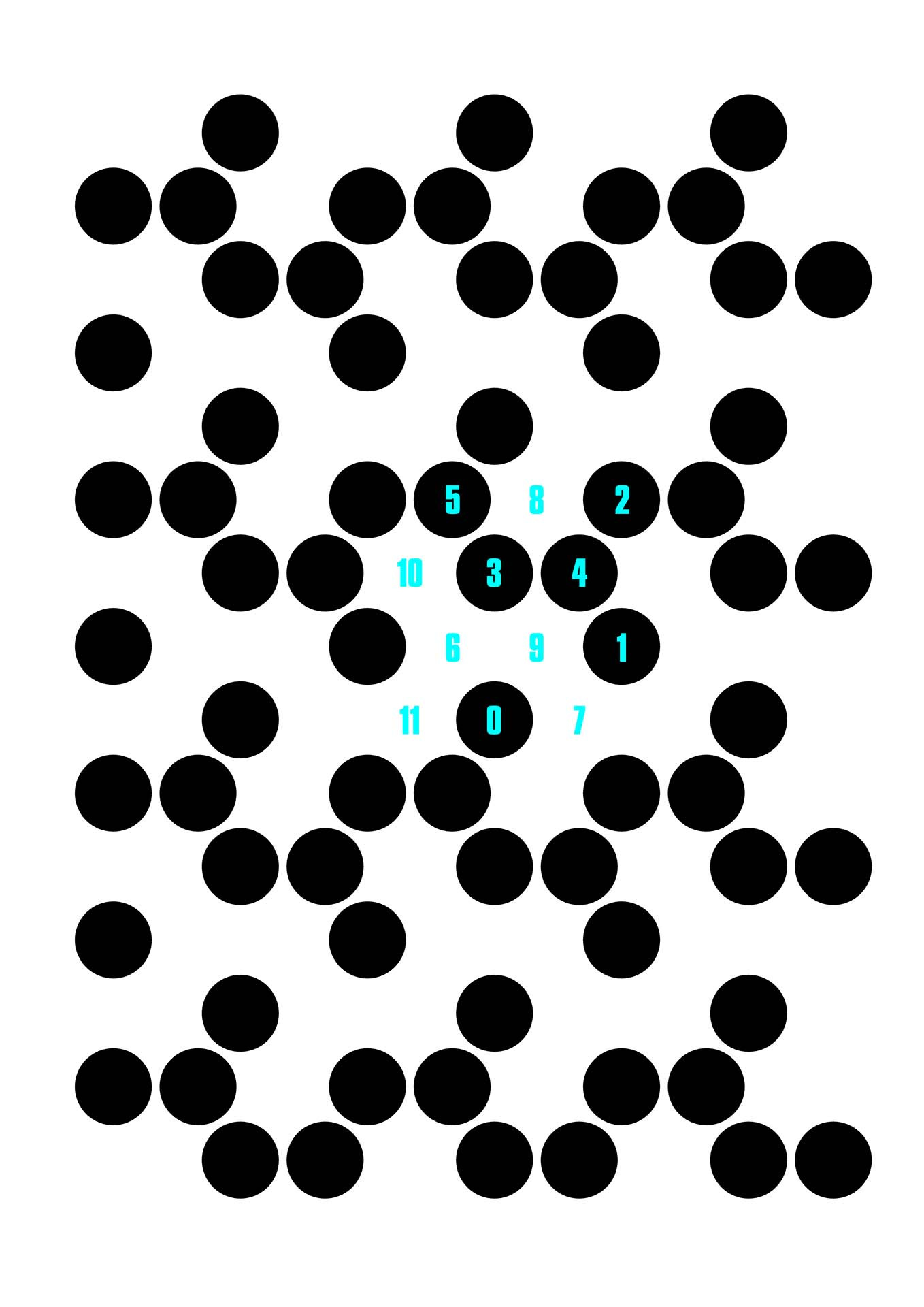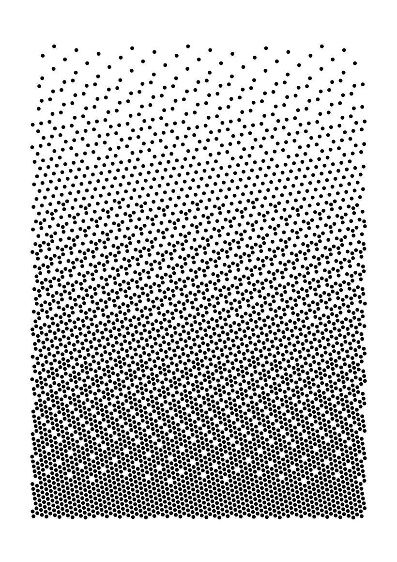 The dots are numbered in such a way that the pattern remains āinterestingā as you remove dots. Thereās better ways (the 10th and 11th dots are too closely aligned for my liking), but this is quick & dirty and good enough, shown below is a gradient of all 13 āshadesā. Note: the āgridā is rotated about 40° counter-clockwise here.