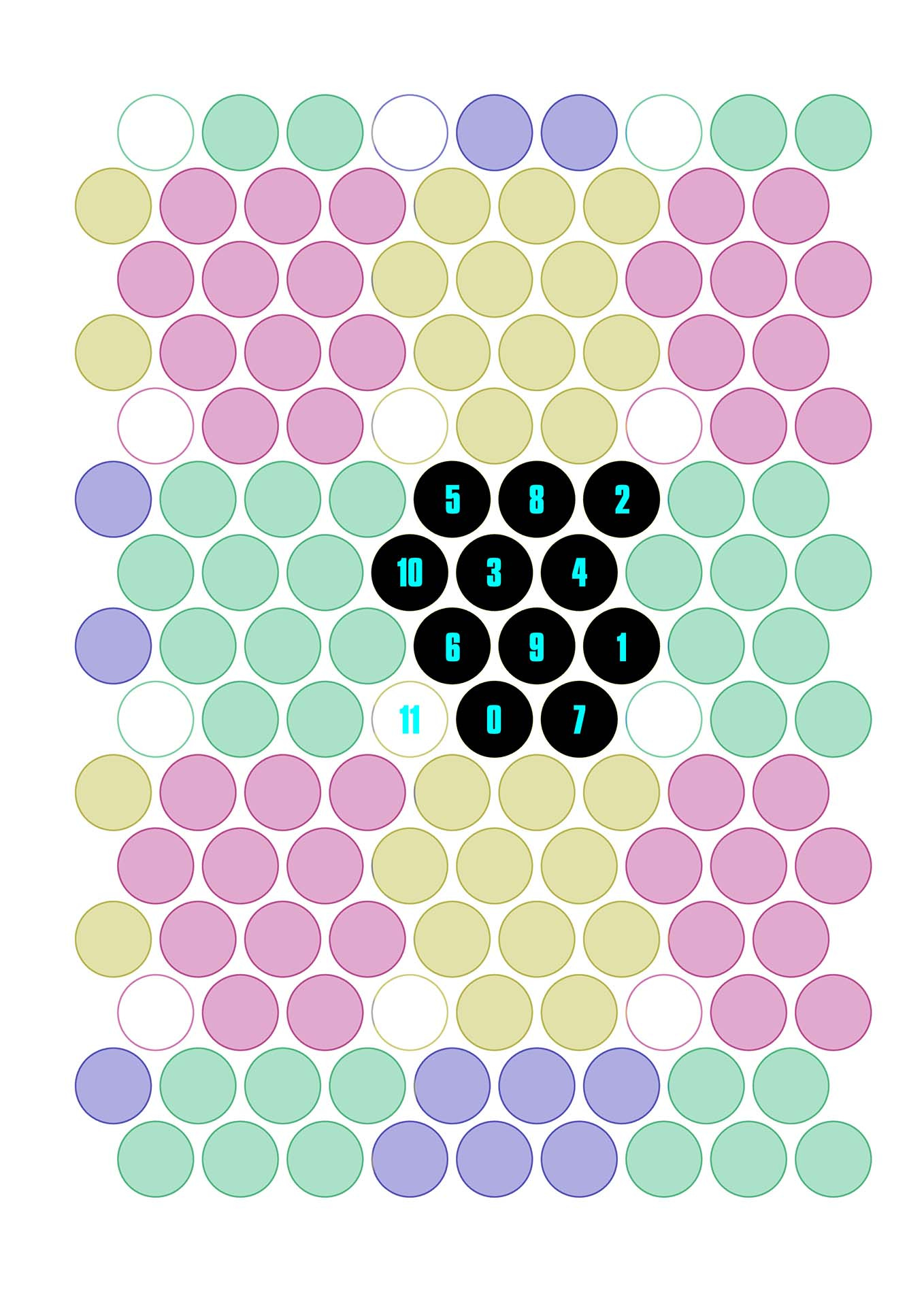 First thing to note though is we can repeat this group of 12 dots over and over to fill in the whole page, Iāve coloured them to make it easier to see.