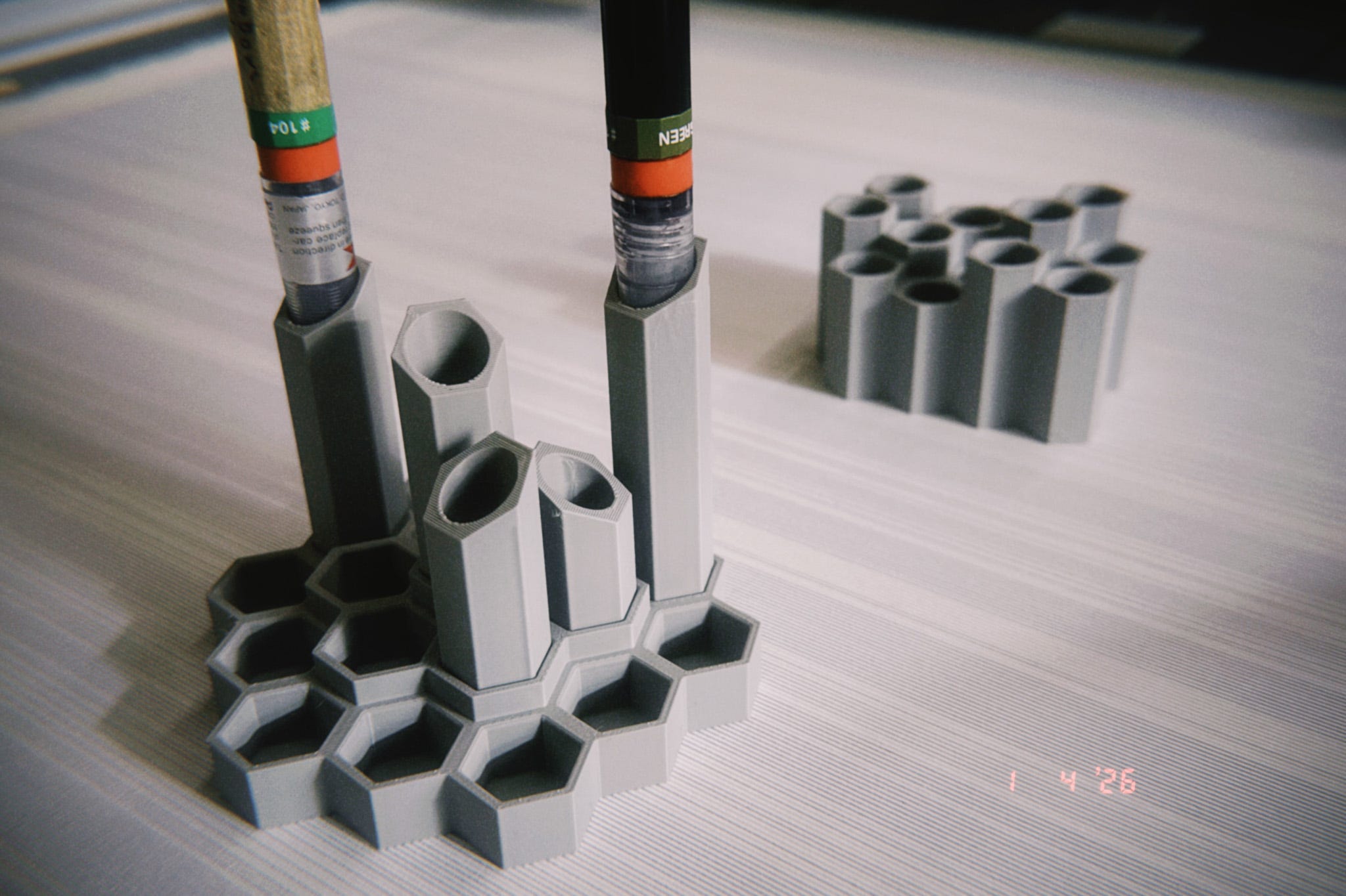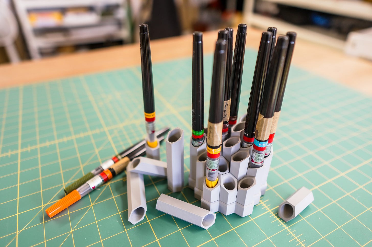 Now I need to do the same for my Pentel brush pens that are scattered all over the place, here’s an v.2 that allows you to both hold pens and create your own hexagon landscape.