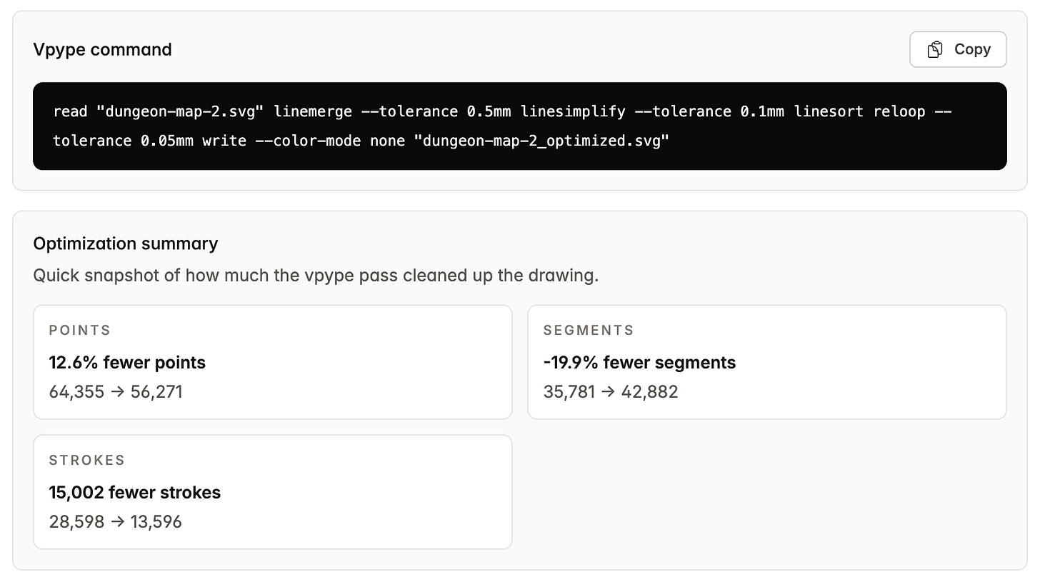 vpype is correctly self described as “the Swiss-Army-knife command-line tool for plotter vector graphics.” and will solve a lot of your pen plotting troubles, so it’s worth getting to grips with.
